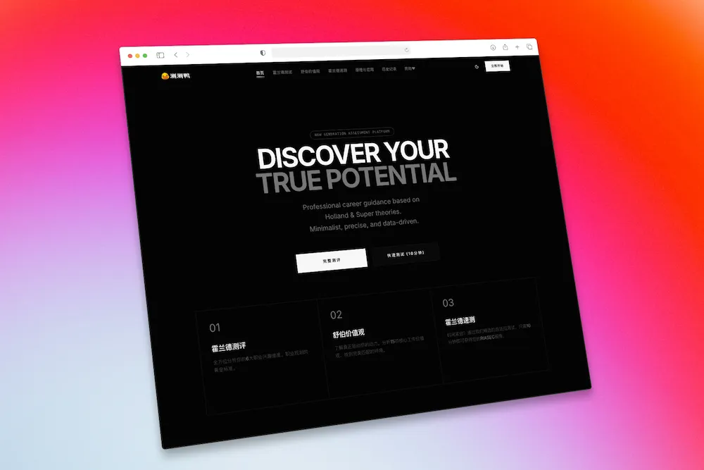 测测鸭|发现你的职业潜能与方向 https://ceceya.net 比较适合学生,当然对于自我探索也是非常nice~的方式